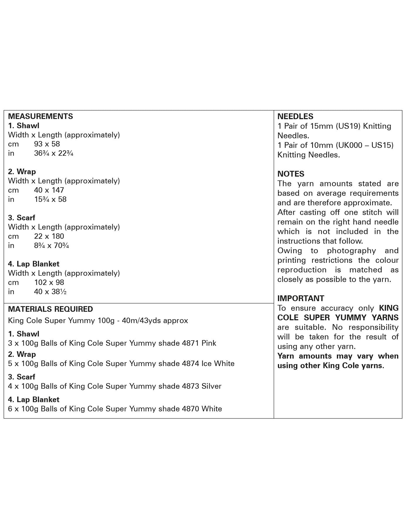 This pattern (5976) from King Cole will teach you to create a cowl and scarves using super-soft and easy to use chenille yarn. A great chenille yarn project idea, the pattern will guide you through the process step by step - all you need is some knitting knowledge to start.