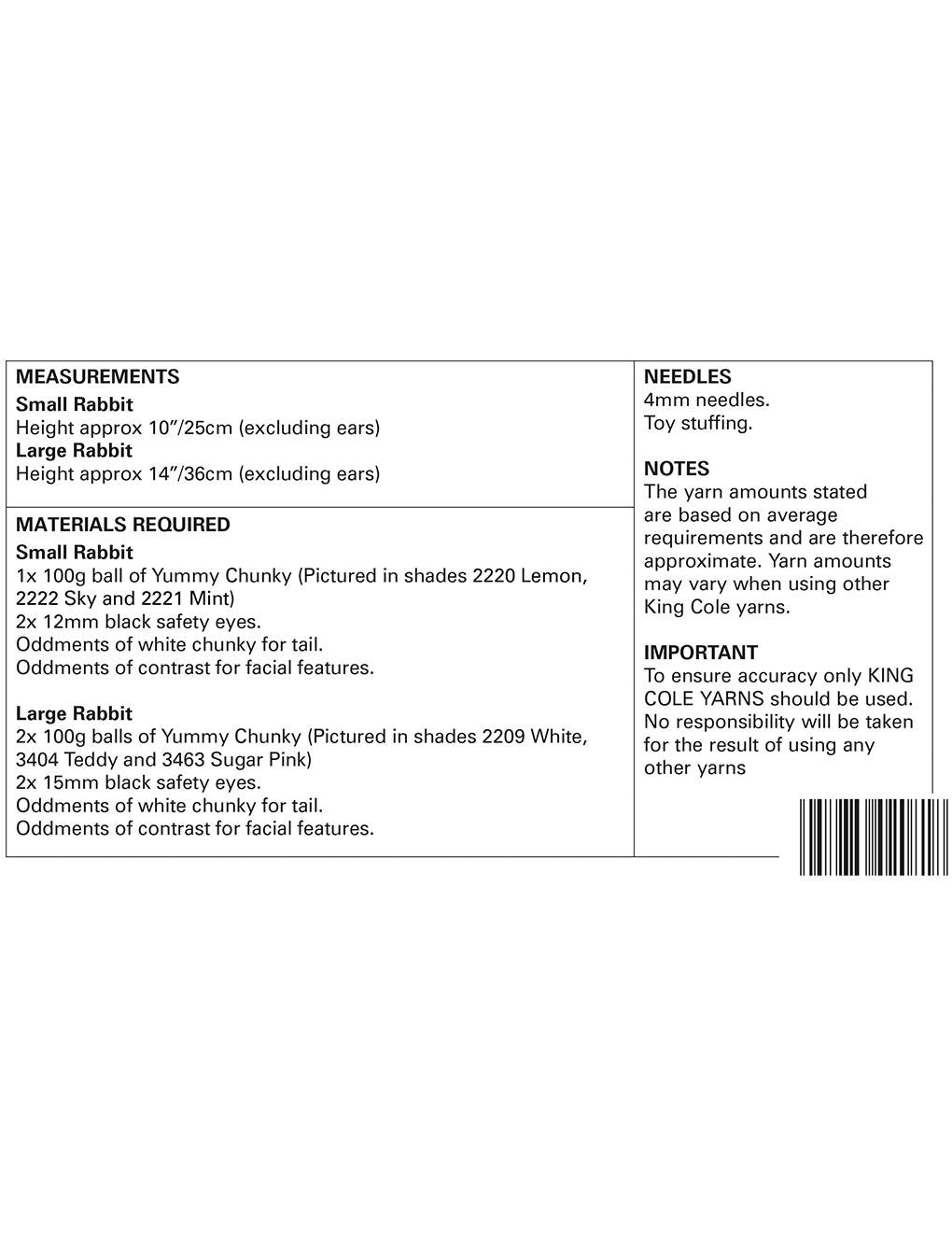 This pattern (9150) from King Cole will teach you to create a Rabbit, using super-soft and easy to use chenille yarn. A great chenille yarn project idea, the pattern will guide you through the process step by step - all you need is some knitting knowledge to start.