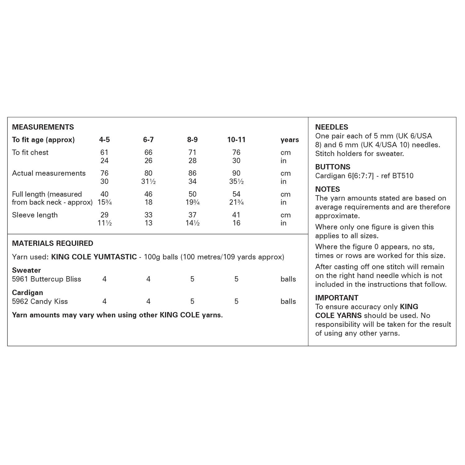 This charming knitting pattern features a cosy sweater and a stylish cardigan for children. Both designs are crafted using the vibrant Yumtastic yarn, offering a playful, textured look. Perfect for layering during cooler days, these knitted pieces will add a burst of colour to any wardrobe with their soft, comfy fit.