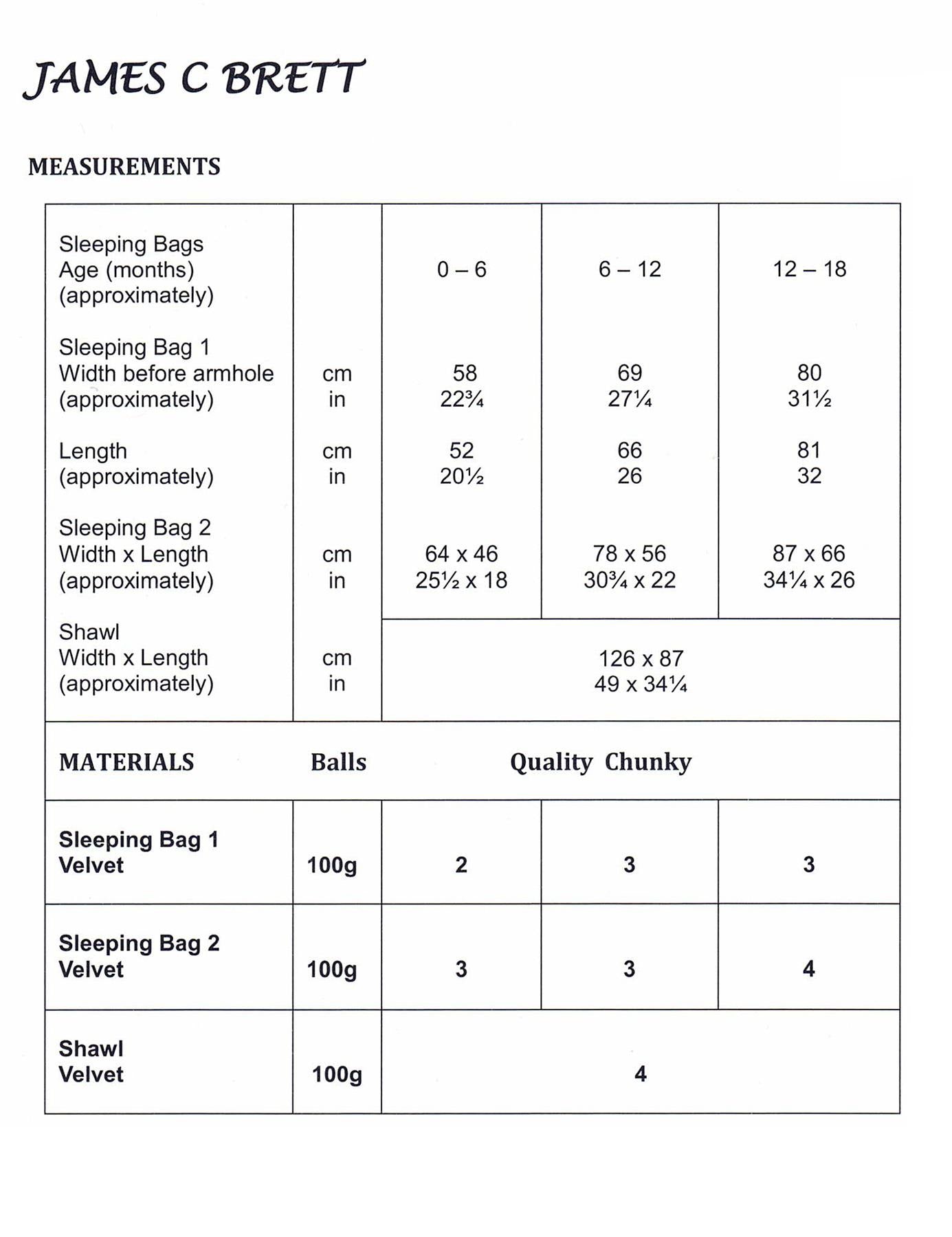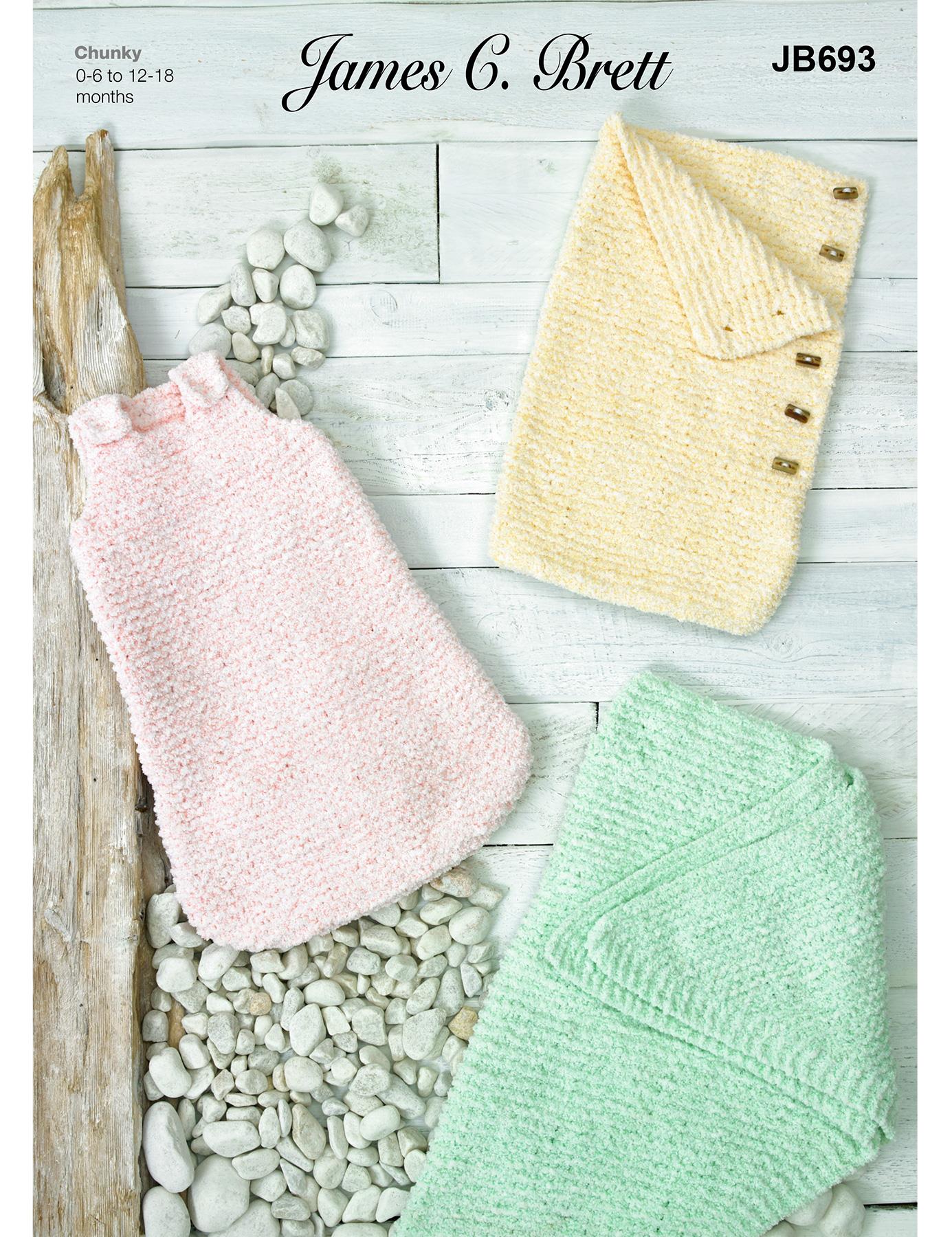 This pattern (JB693) from James C Brett will teach you to create a sleeping bag and shawl using super-soft and easy to use baby velvet chenille yarn. A great chenille yarn project idea, the pattern will guide you through the process step by step - all you need is some knitting knowledge to start.