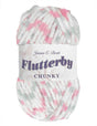This yarn shade is B53 and it's ideal for making cosy soft blankets, perfect for baby cots and prams. Other projects ideal for chenille yarn include bags, cushions, throws and garments. James C Brett Flutterby yarn is made from 100% soft polyester and is machine washable.
