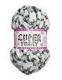 This yarn shade is Silver (4873) and it's ideal for making super chunky, cosy, soft blankets, perfect for baby cots and prams. Other projects ideal for chenille yarn include bags, cushions, throws and garments. King Cole Super Yummy chenille yarn is made from 100% soft polyester and is machine washable.